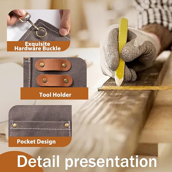 - This woodworking apron is made of durable heavy-duty waxy canvas material, which can be used for a long time at work, wear-resistant, waterproof and stain-proof.