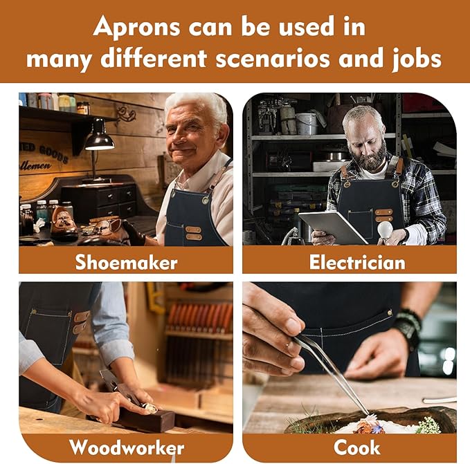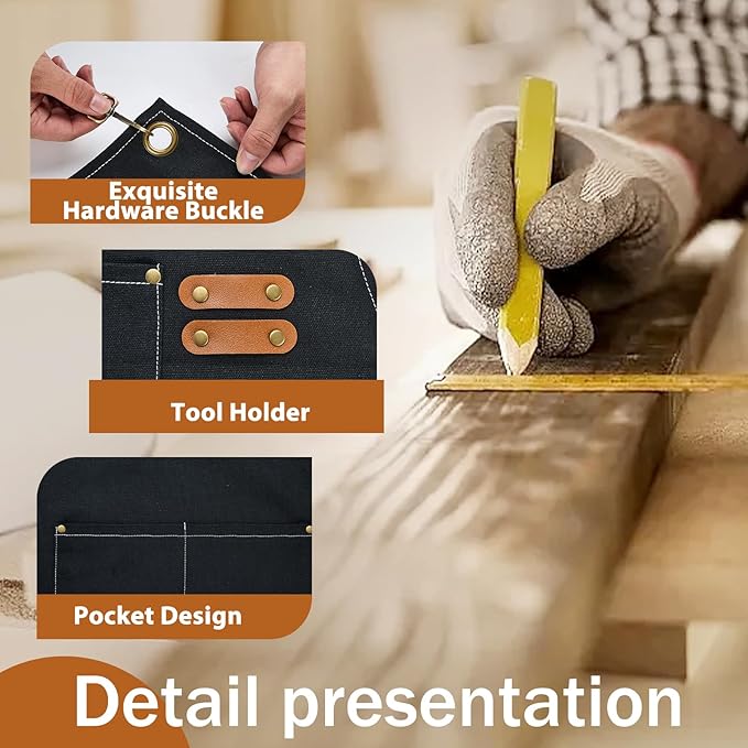 - Material: This woodworking apron is made of durable heavy-duty waxy canvas material, which can be used for a long time at work, wear-resistant, waterproof and stain-proof.