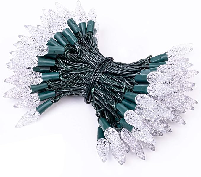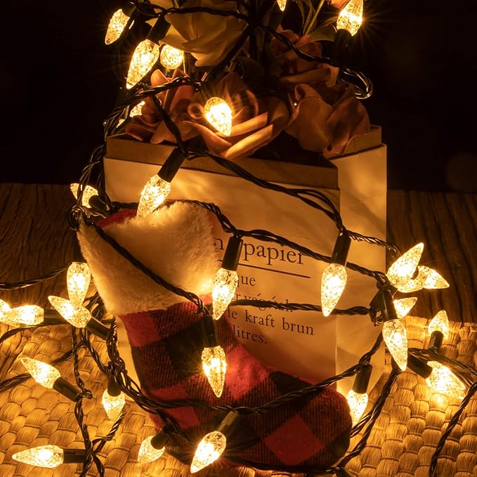 AWQ 100LED 33 FT C6 Christmas String Lights Plug in Fairy Twinkle String Lights 8 Modes Timer Function Waterproof Extendable for Indoor Outdoor Wedding Party Christmas Decoration (100, Warm White)