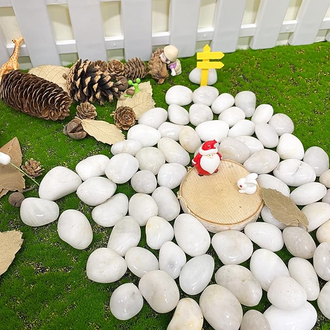 2 lbs Small White Pebbles for Plants, 0.8-1.2 inch Decorative River Rocks for Plants, Aquariums, Landscaping. White Stones for Planter Vase and Outdoor Garden Rocks