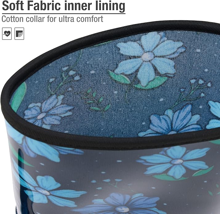 - These women’s rain boots feature a soft and flexible PVC materials upper and round-toe silhouette. The soft and quick-dry textile lining absorbs moisture, so you will stay dry, cozy, and warm in the backyard garden.