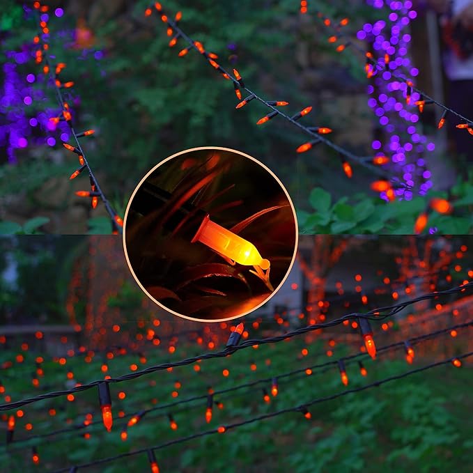- [8 Lighting Modes]: Halloween orange range mini string light has 8 lighting modes for you to choose - Combination, In waves, Sequential, Slow Glow, Chasing/Flash, Slow fade, Twinkle/Flash, Steady on. Adjust the lighting modes by pressing the round button on the battery box.