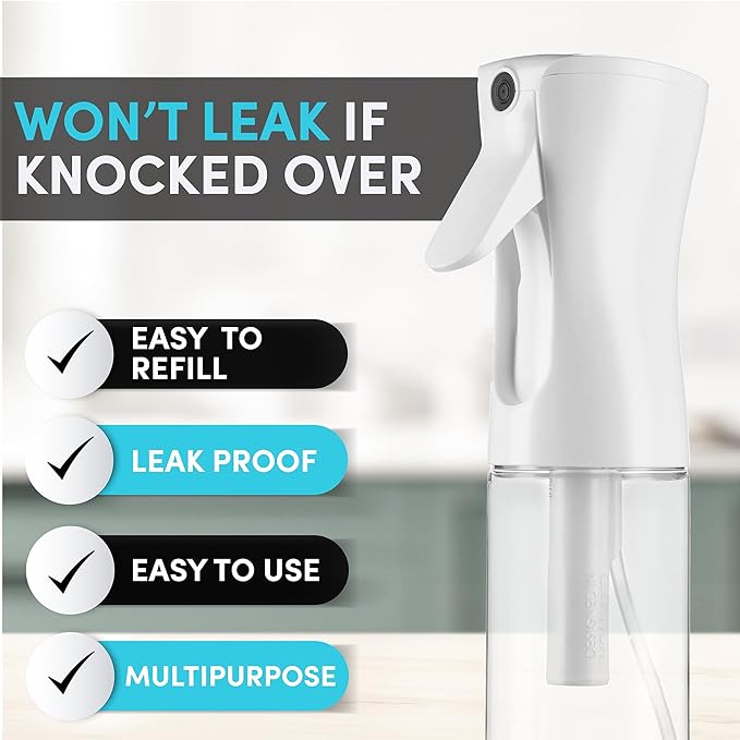 - 【Leak Proof, 360° Spray】Our unique design provides maximum versatility using the option to spray in any angle, while protecting your countertops and surfaces by eliminating any leaks. Keep the water exactly where you want it: inside the bottle and spraying according to your directions!