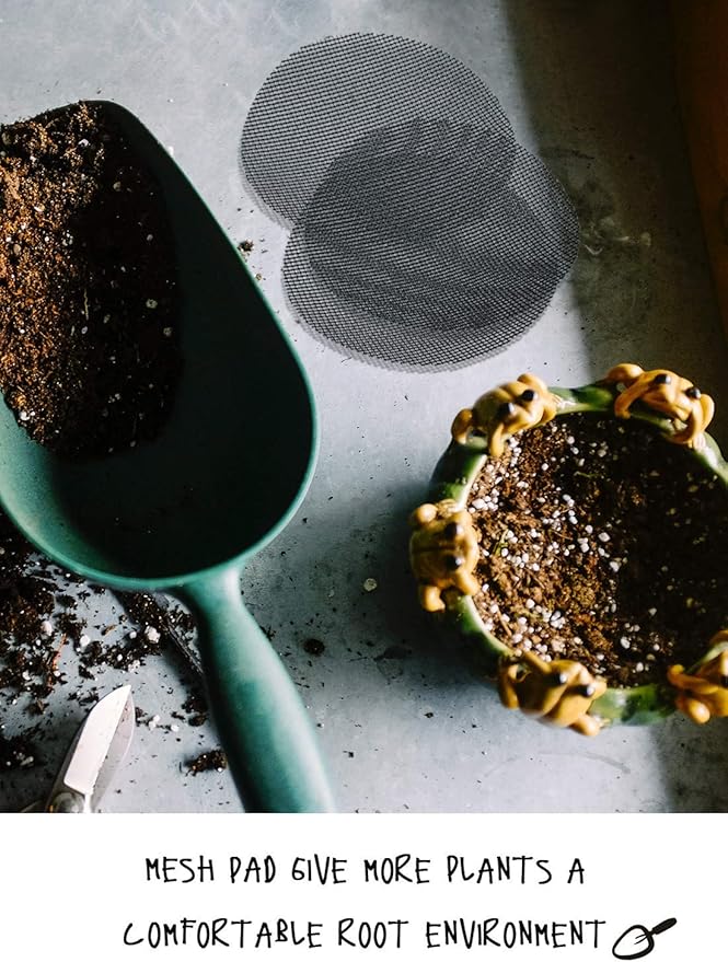 - Say Goodbye to Soil Spills: Lightweight and flexible mesh pads fit snugly over drainage holes, keeping soil in place and ensuring a clean gardening experience. No more messy leaks or heavy rocks