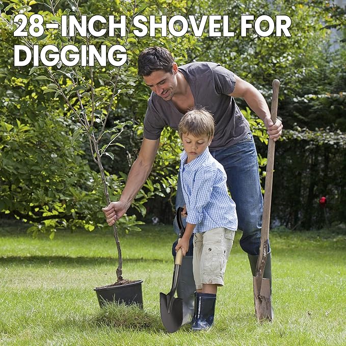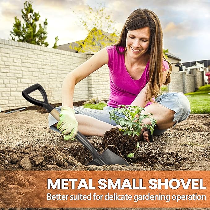 - MINI SHOVEL The overall size of the shovel is only 28 inches. It can be placed in the trunk of the car or in the tool box. It will not take up too much space. It is very suitable for use in a narrow space. It is also the best gift for children.