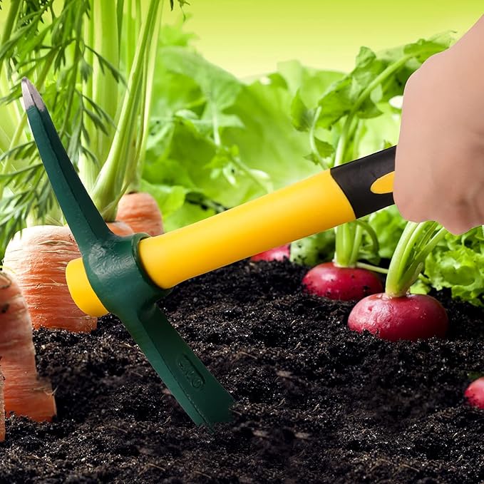 - CONVENIENT TO USE - You can assemble the pick mattock hoe at a breeze within a few seconds. When not in use, it can be easily disassembled to maximize the use of storage space, or can be directly hung for storage by the pre-drilled hole at the end.
