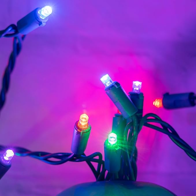 - Brilliant Light. The vivid mini light strings featuring popular red, orange, green, blue, and purple bulbs, create an eye catching light display that really stands out. Perfect for parties, holidays, and special events of all kinds, let them bathe in rich, beautiful light to create the perfect atmosphere for your most festive occasions. Create your happy place with the help of colorful illumination.