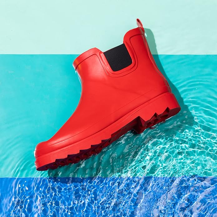 - NATURAL RUBBER CONSTRUCTION: When the wetness tries to sneak in, our cute rain shoes shut it out with a highly water-resistant, built-to-last design. They also have a rugged, chunky, and deep tread to keep you steady in slippery conditions.
