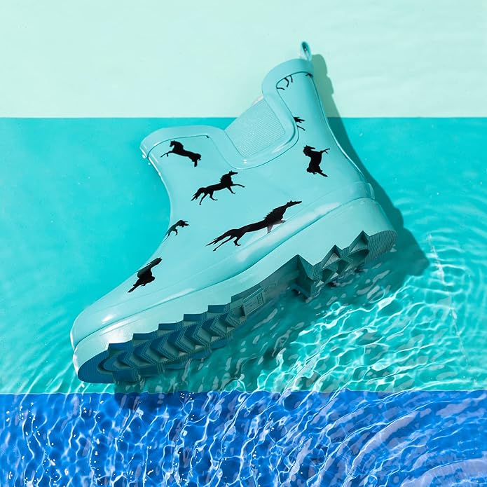 - NATURAL RUBBER CONSTRUCTION: When the wetness tries to sneak in, our cute rain shoes shut it out with a highly water-resistant, built-to-last design. They also have a rugged, chunky, and deep tread to keep you steady in slippery conditions.