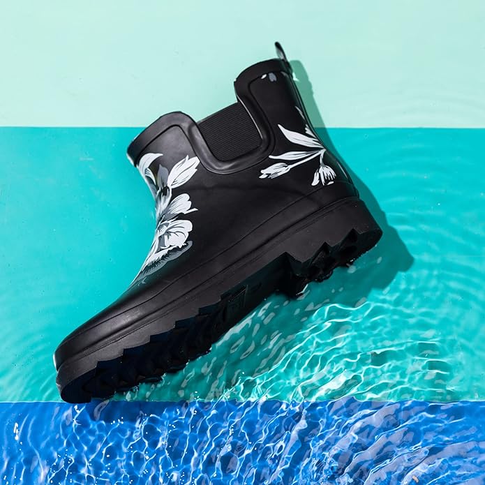 - NATURAL RUBBER CONSTRUCTION: When the wetness tries to sneak in, our cute rain shoes shut it out with a highly water-resistant, built-to-last design. They also have a rugged, chunky, and deep tread to keep you steady in slippery conditions.