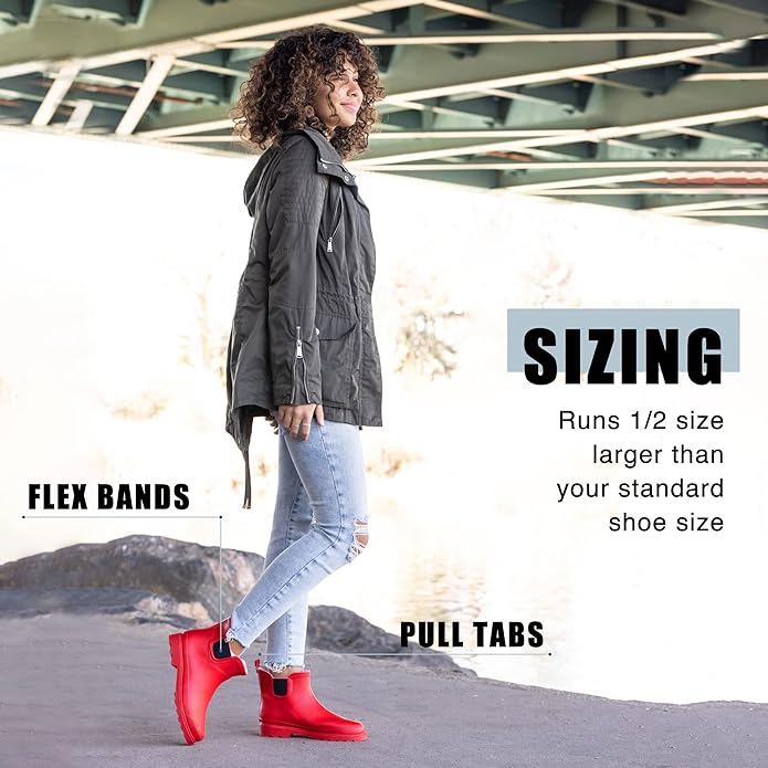- RUNS A HALF-SIZE LARGER: With extra room for thick socks, these ankle rain boots keep feet warm on colder than cold days. Size Info: US Size: 6, 7, 8, 9, 10, 11 - EUR Size: 37, 38, 39, 40, 41, 42 - Foot Length: 9.25", 9.50", 9.75", 10.00", 10.50", 10.75" Shaft circumference is 12" with boot height of 6" for all sizes