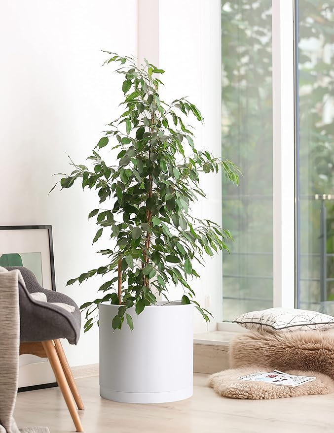 D'vine Dev 14 Inch White Plastic Planter Pots for Plant Pot with Drainage Hole and Seamless Saucers, 74-X-A-4