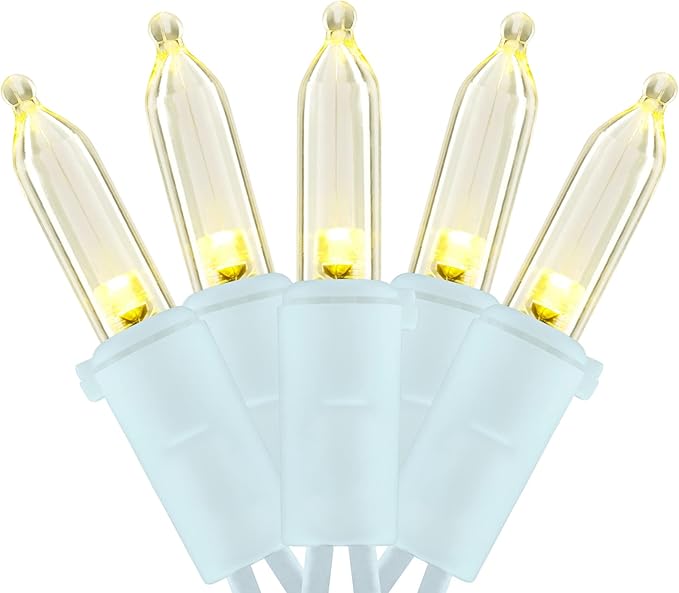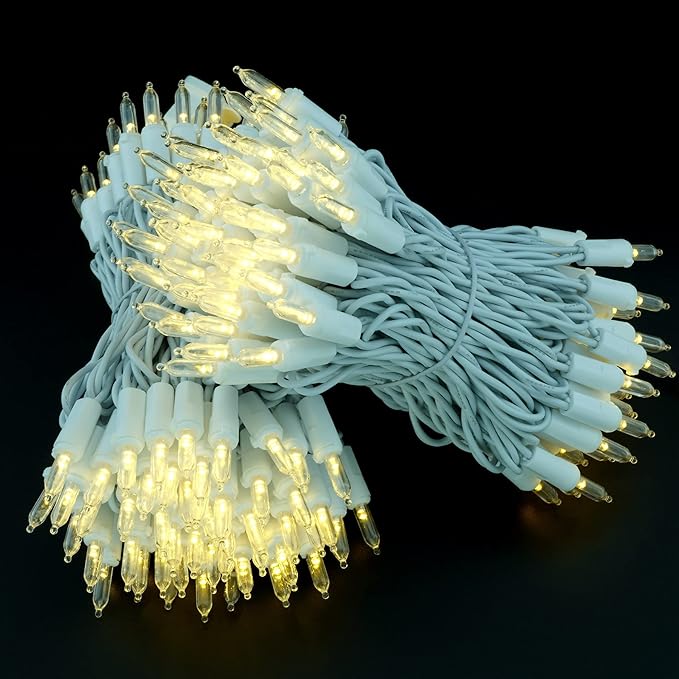 - Soft Warm White: The bulb is the same clear shell as traditional mini light. It is a unique warm glow, similar to the light emitted by old incandescent bulbs, which is soft and warm. It is definitely not harsh white! The white cord elegantly blends with any decor, ensuring that your lights shine brightly without distracting from your overall theme. The string light has a rectifier for stable current, which eliminates invisible flicker to the naked eye and protects your eyesight.