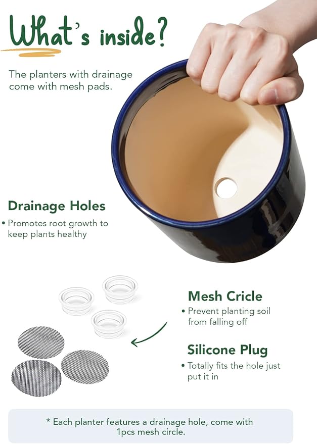 - Thoughtful Accessories: To drain or not to drain, it's all up to you; roots love moisture but are afraid of excessive water; use a silicon plug to prevent water leakage, or cover the drainage hole with a mesh pad to prevent soil loss, offering good ventilation for plants to breathe without restriction (Plant is NOT included)