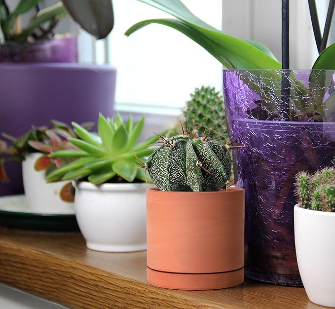 D'vine Dev X-Small 4 Inch Terracotta Plant Pot with Drainage Hole and Saucer, Round Cylinder Planter Pot for Indoor Plants, 40-X-A-1
