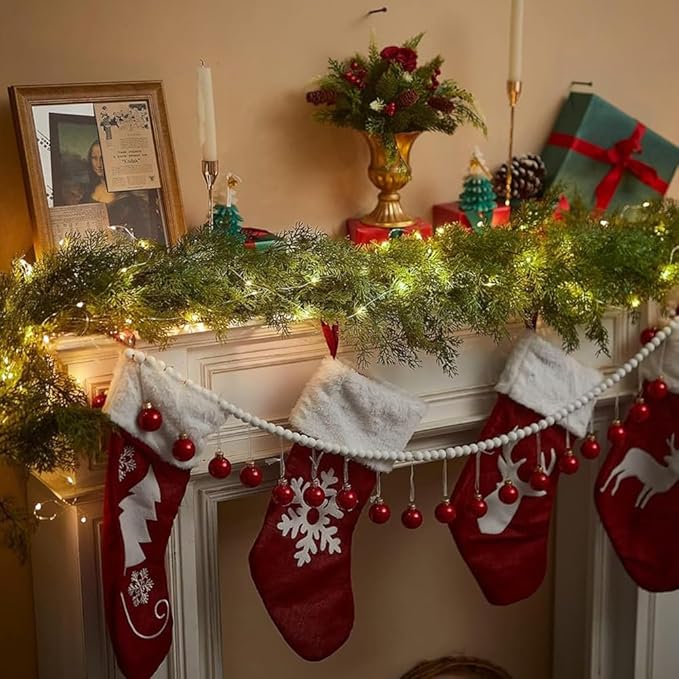 - 【Applications】 - Place it anywhere to add charm, such as mantelpieces, dining tables, stair railings, railings, walls, doorways, windows, archways, etc. The garland can also be randomly matched with other small things to increase the Christmas atmosphere, such as pine cones, Christmas balls, and so on. It is an indispensable Christmas item to add a festive atmosphere to your home!