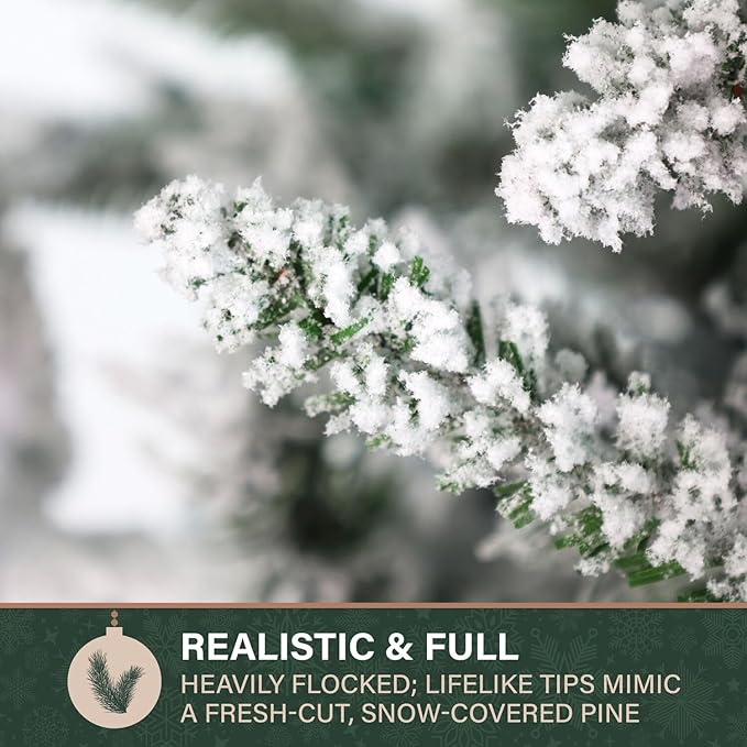 - Looks Just Like Real Pine: This artificial tree is made with high-quality PVC needles and premium, fade resistant flocking material that resembles natural pines coated in freshly fallen snow