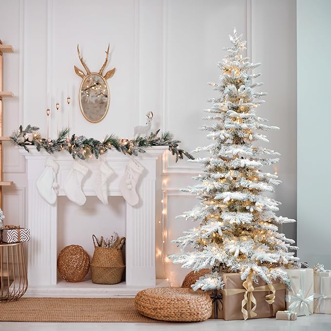 - Heavily Flocked Christmas Tree: Our premium, fade-resistant flocking material gives the appearance of fallen snow and the full and dense lifelike tips create the appearance of a traditional cut tree
