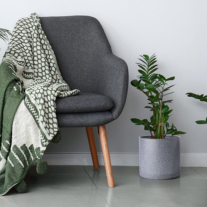 D'vine Dev 8 Inch Plastic Planter Pots for Plant Pot with Drainage Hole and Seamless Saucers, Speckled Gray Color, 74-X-G-1