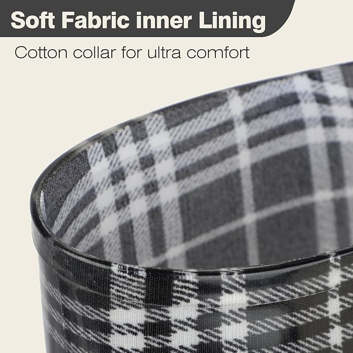 - Easy to Clean:Mid calf shaft gives you plenty of coverage and prevent from splashing. The exterior has glossy plastic coating, protects rain boots from stains and dirt, easy to clean by hose scouring or wiping by wet cloth