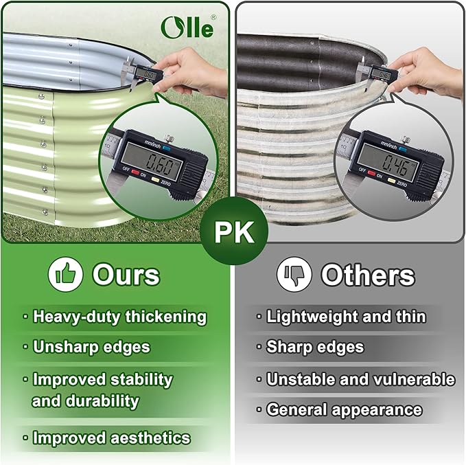 Olle Galvanized Raised Garden Bed Elevated Raised Garden Bed Metal 17" Tall 12-in-1 Grow Herbs and Vegetables Home Garden for Outdoor Backyard, Sage Green 17" Tall