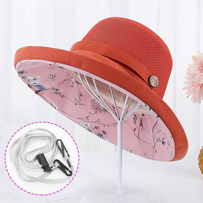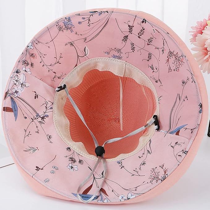 Women Wide Brim Sun Hats Metal Wired Edge Summer UV Protection Beach Fishing Hat for Hiking Garden Travel Chin Strap