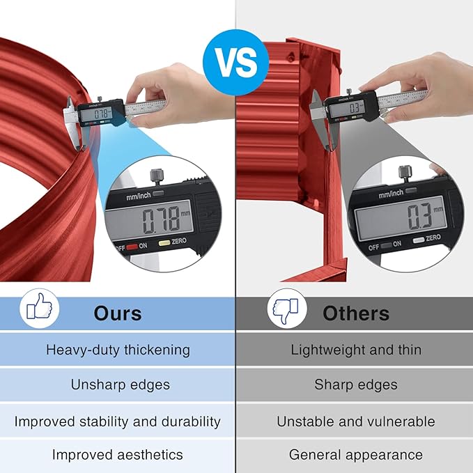 - Double thickness: The average thickness of this galvanized planter galvanized sheet reaches 0.78mm, and the thickest part can reach 1.56mm, which is extremely stable. Compared with the ordinary rectangular elevated garden bed with a thickness of 0.3mm, it will be the right choice for you. buy it! ! !