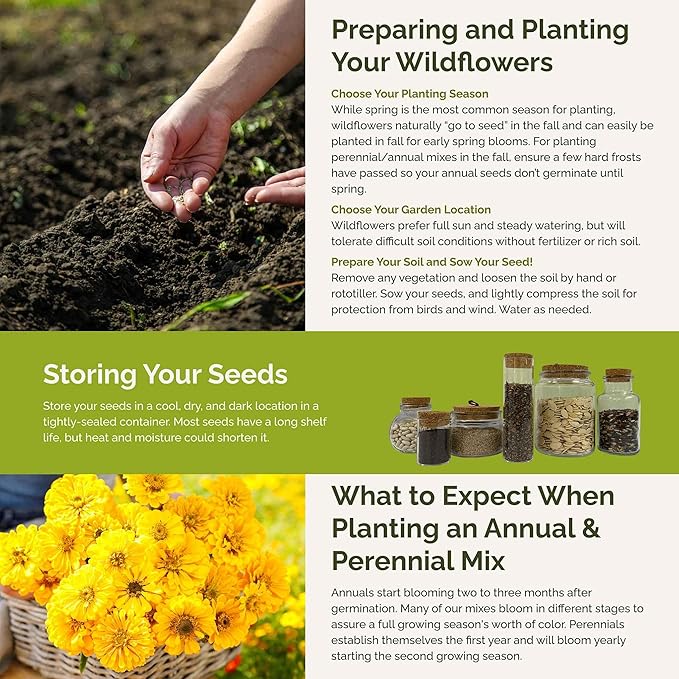 - Attracts Pollinators - With up to 1,200 square feet of ground cover, this non-GMO seed mix is sure to bring the bugs and birds to your yard! Easily attract bees, butterflies, and hummingbirds to pollinate blooms.