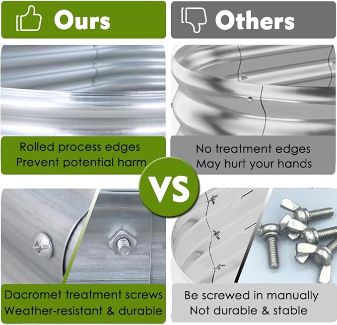 - DURABLE & STABLE: Made of premium galvanized steel sheet features long-lasting use during kinds of weather, more stable and durable than wooden planters. The wave stripe and reinforced corner enhance the structure and expands life span of garden bed. 17.3 inch tall design brings more comfortable gardening experience
