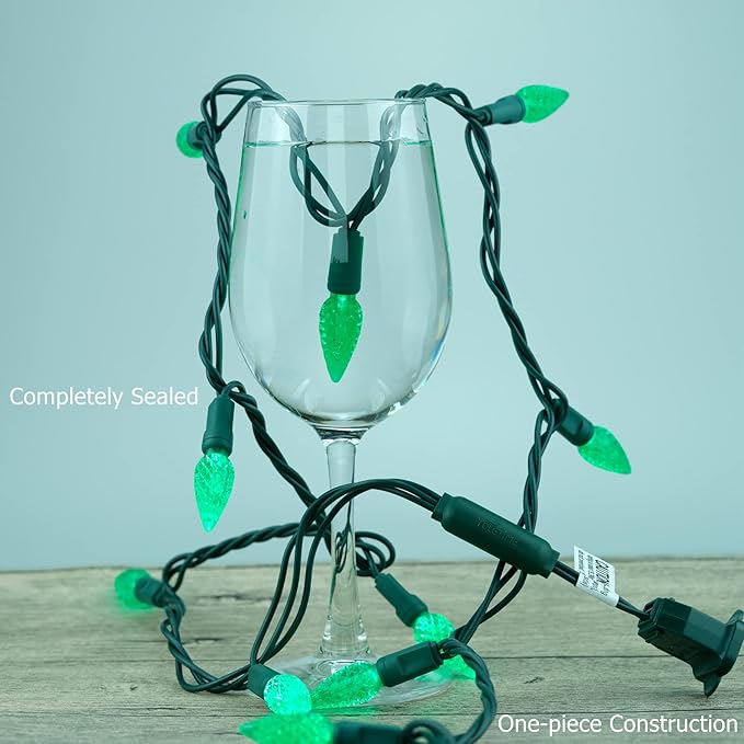 YULETIME Green C6 Strawberry LED Christmas Lights, 33 ft 100 Count 4" Spacing One-Piece High Waterproof UL Certified String Light (Green)