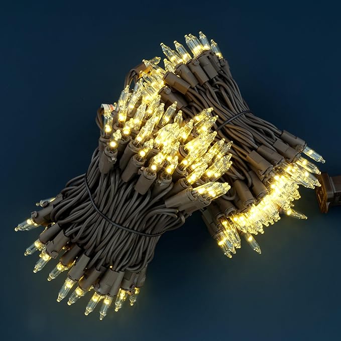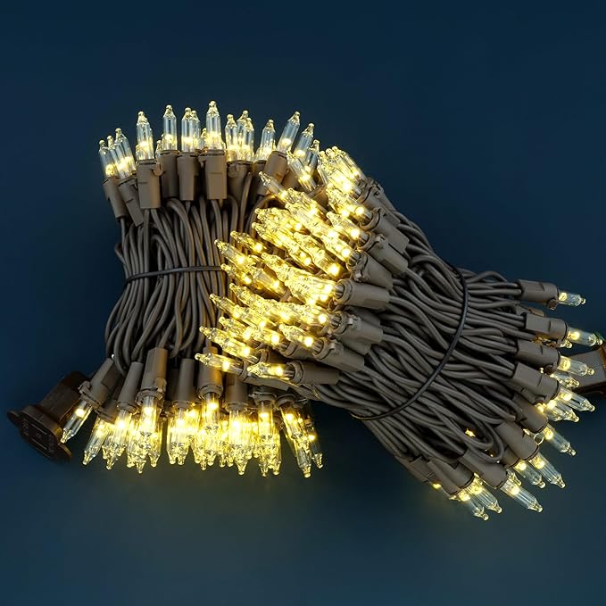 YULETIME 200 Warm White Christmas Lights, Pack of 2 Strands of 21 ft 100 Count UL Certified Mini String Light (Warm White - Brown Wire)
