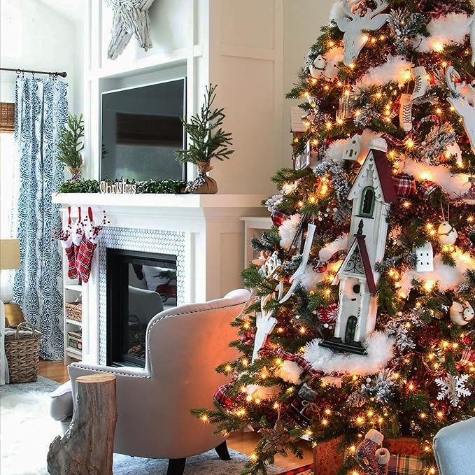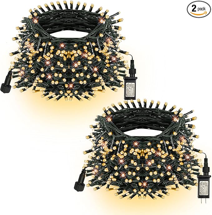 - Exquisite Christmas Lights Decorations: Package include 2 pack of 200 LED Christmas string lights. The lighting length of each 200 LED warm white string light is 66 FT, the lead wire is 10 feet, total length is 76 ft. Length between bulbs: 3.9 Inches/ 10cm. The LED Christmas lights outdoor are more bright than other incandescent mini string lights. Creating a warm and charming atmosphere for Xmas party.