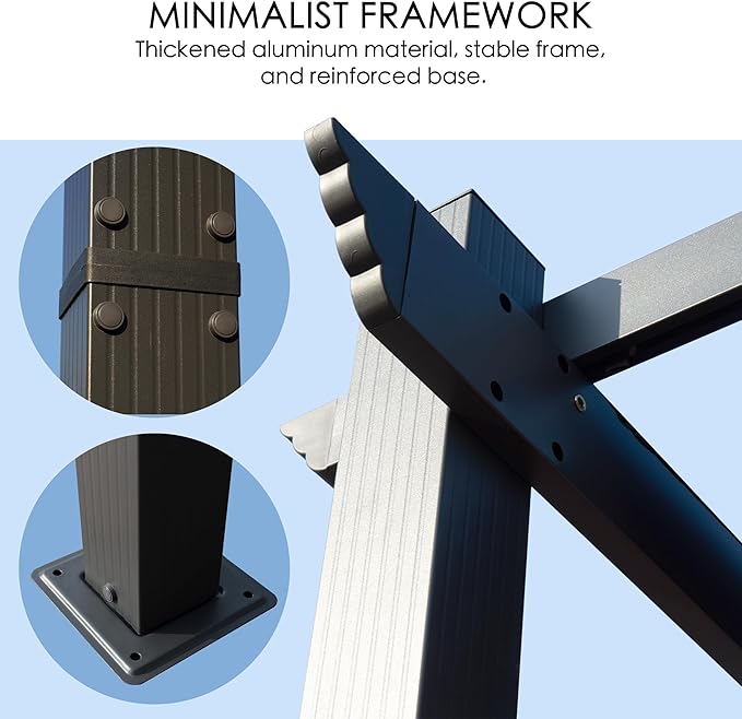 - ✅Aluminum Pergola - Made with a sturdy, extra-large gray aluminum frame, this pergola is designed to withstand the elements and provide a durable structure for your outdoor space.