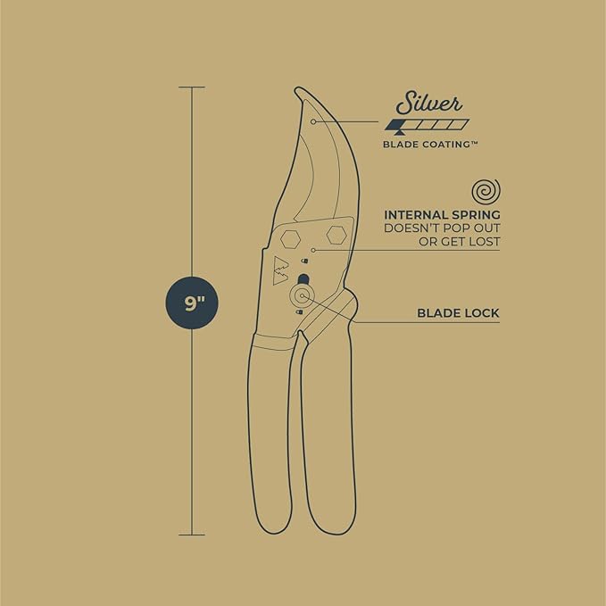 Woodland Tools Co. Bypass Pruning Shears for Gardening – 5/8" Cut Capacity, High Carbon Steel Blade with Non-Stick Coating, Soft Grip, Steel Handle, Hand Pruner for Plants, Flowers, and Shrubs