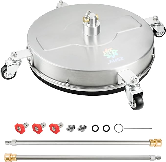 janz 17" Pressure Washer Surface Cleaner with 4 Wheels, 1/4" Quick Plug, 2 Extension Wands, 2 Replacement Nozzles and 3 Spray Nozzles, 4000 PSI