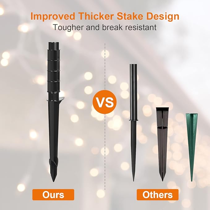 - Simple Installation and Wall Mountable: Comes with a thicker and tougher stake for easy insertion into hard ground; Wall-mountable with two mounting holes on the back; Perfect for setting up Christmas lights, outdoor string lights, landscape lighting, and other outdoor decorations using the six-outlet outdoor power strip weatherproof
