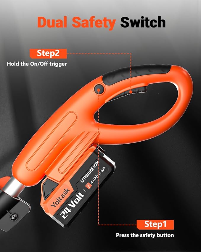 - SAFE & HASSLE-FREE - Never to worry about complex maintenance tasks, fossil fuel requirements, carbon emissions, or tangled extension cords with Voltask cordless snow shovel. Moreover, our power shovel is equipped with a dual-safety switch designed to reduce the risk of accidents. The battery compartment of the snow shovel is made from waterproof coated materials, providing comprehensive protection for the battery and ensuring a safe and reliable snow removal experience.