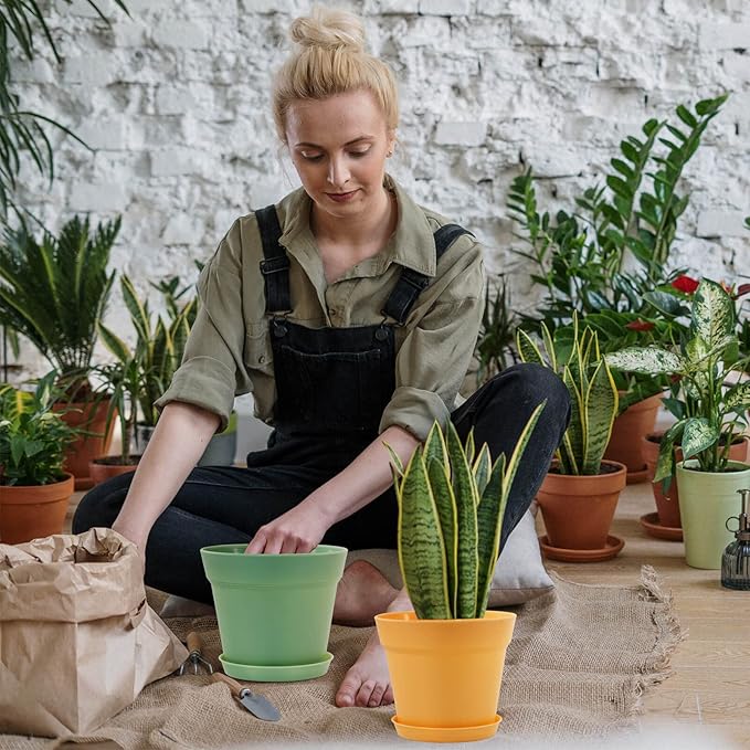 - 【Most repotting for Indoor Plants】 This 6inch Plant pot set includes 16 pieces planting pots and 16 pieces of the matching trays are great for repotting plants, you can grow a variety of plants indoor or outdoors, such as orchid, snake plants, mint, parlor palm, devil’s ivy, cactus, aloe