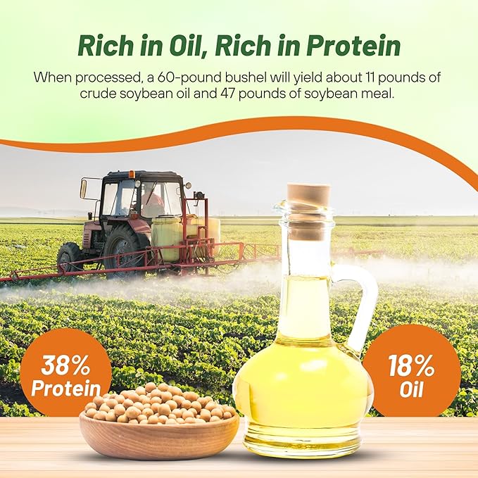 - RICH IN PROTEIN & OIL WITH VERSATILE USES: Containing about 18% oil and 38% protein, this soybean variety is perfect for producing high-quality soy bean oil and protein-rich meal. These soybeans can be processed into a wide range of products, including soy milk powder, soy flour, soy protein, tofu, and various industrial non-food products, showcasing its versatility. Ideal for making various soy-based meals such as edamame snacks.