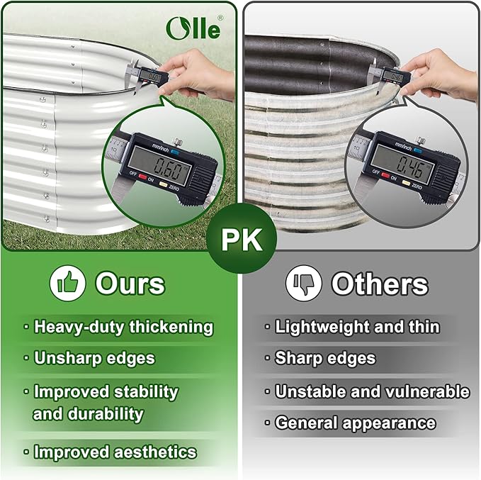 Olle Galvanized Planter for Vegetables 12-in-1 Large Metal Raised Bed Gardening Kit for Outdoors 32" Tall Size 5X5 Feets 8X2 Feets 4x8 Raised Garden Bed, Ivory