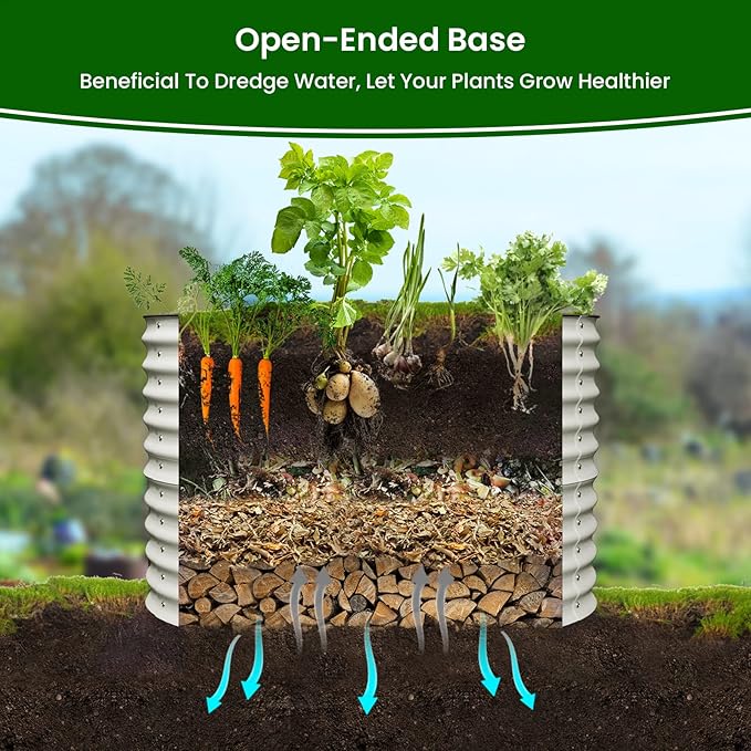 Olle 32" Tall, Raised Beds for Gardening Galvanized Raised Garden Beds Round Garden Bed Metal Flower Bed Outdoor, Backyard Garden Planter Box, Ivory