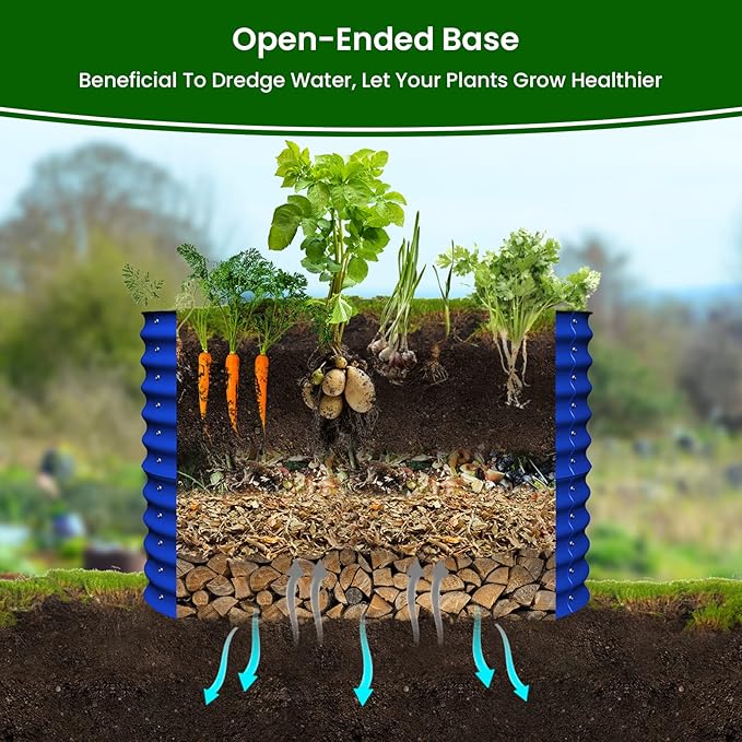 Olle 32" Tall, Galvanized Raised Garden Bed for Flower Round Galvanized Planter Raised Bed Metal Raised Planter Bed, Urban Vegetable Garden Planters, Cobalt Blue