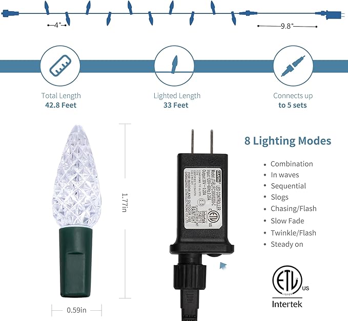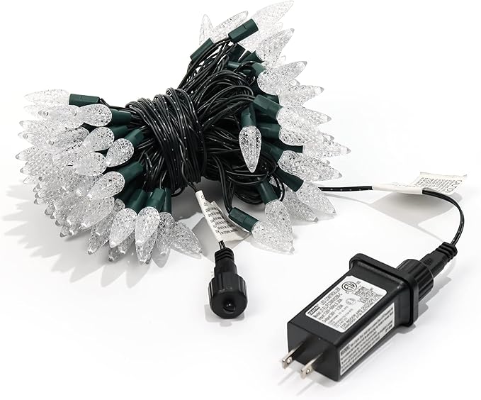 - [Christmas Decorative C6 String Lights]: With 100 cool white individual faceted strawberry C6 LED bulbs. Each Christmas light has end-to-end connection, you can connect up to 5 sets together to illuminate a wider range