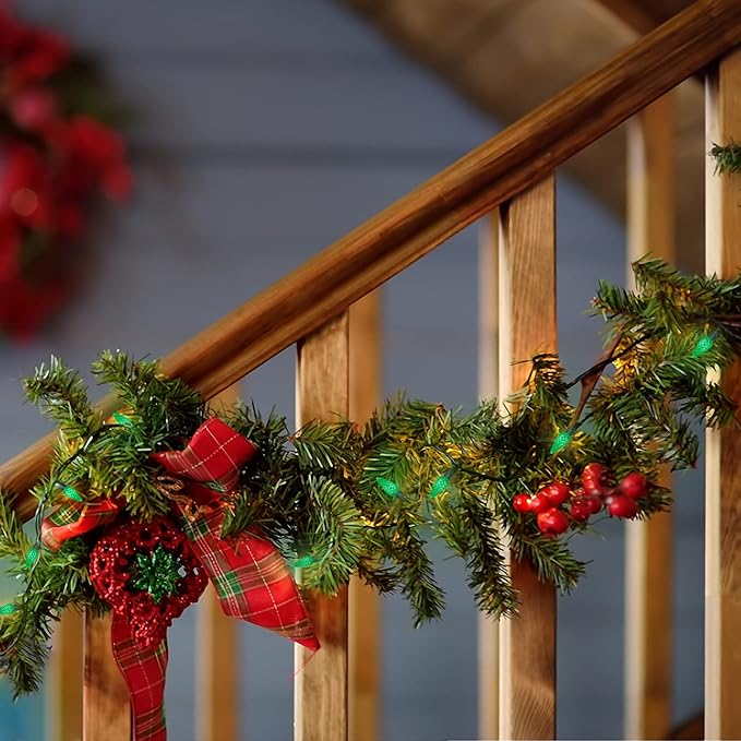 - [Christmas Decorative C6 String Lights]: With 100 green individual faceted strawberry C6 LED bulbs. Each Christmas light has end-to-end connection, you can connect up to 5 sets together to illuminate a wider range