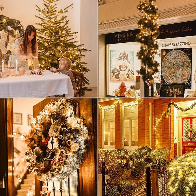- 🌲Connectable Christmas Lights: Warm white string lights can be End-to-End connected. Up to 10 sets,lighting range can be extended to 130ft. With this convenient function,you can do the DIY decoration on any occasions: shopping street, Christmas, Halloween, music festival, birthday party, graduation party, garden, deck, bedroom.