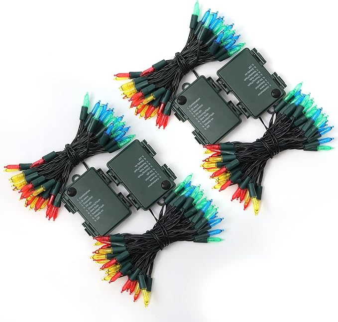 - [8 Lighting Modes]: WATERGLIDE 4 pack 50LED Christmas multicolor mini string lights have 8 lighting modes for you to choose - Combination, In waves, Sequential, Slow Glow, Chasing/Flash, Slow fade, Twinkle/Flash, Steady on. Adjust the lighting modes by pressing the round button on the battery case