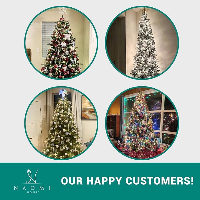 - WARM LIGHTS TO BRING MORE JOY : The Hinged fake Christmas Tree comes Pre-lit with 400 incandescent lights that make setting up your tree a breeze. These lights emit a warm glow that highlights your decorations and holiday gifts making your place extra-special. The included foot pedal allows easy control of the lights on the Christmas Tree. Naomi Home Christmas Trees with Lights always stand for trust and quality.