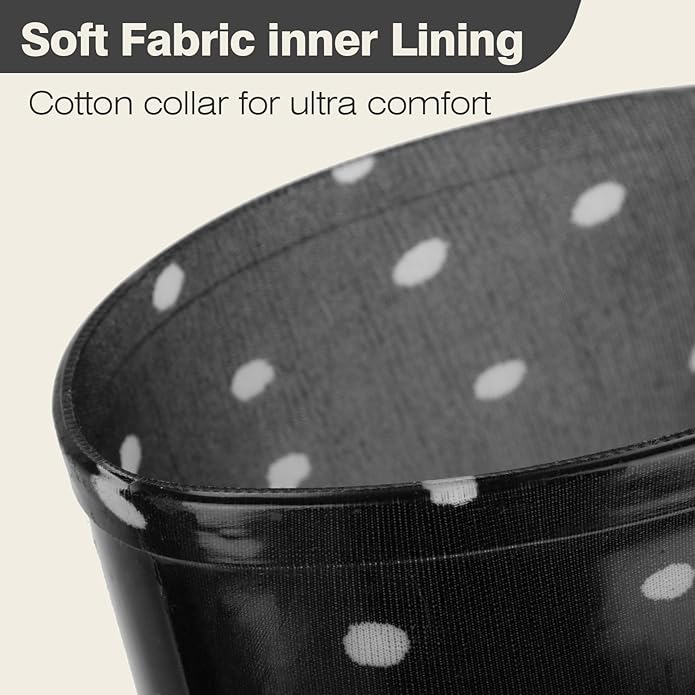 • Easy to Clean:Mid calf shaft gives you plenty of coverage and prevent from splashing. The exterior has glossy plastic coating, protects rain boots from stains and dirt, easy to clean by hose scouring or wiping by wet cloth