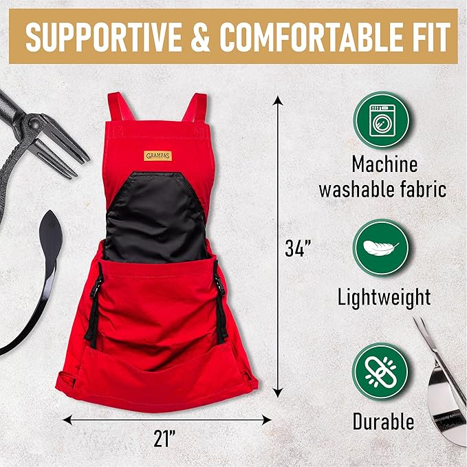 - Multifunctional Gardening Apron - Grampa's garden apron acts like an extra pair of hands, making it versatile and a great gift for gardeners. Whether you're harvesting, weeding, gathering or planting, our apron will help you get the job done in your yard or home.