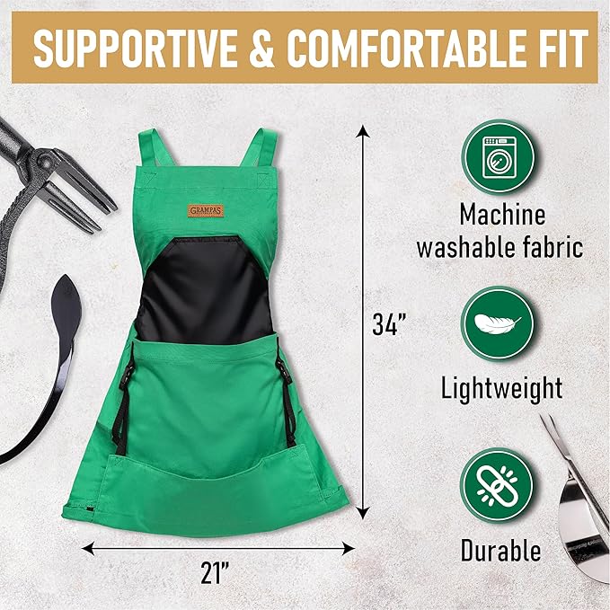 • Multifunctional Gardening Apron - Grampa's garden apron acts like an extra pair of hands, making it versatile and a great gift for gardeners. Whether you're harvesting, weeding, gathering or planting, our apron will help you get the job done in your yard or home.
